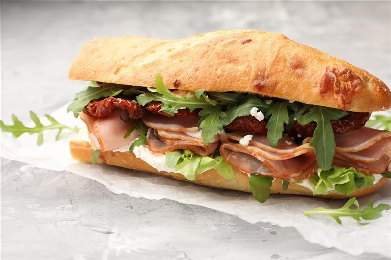 Prosciutto, fig jam, whipped goat cheese, arugula on Iggy’s ciabatta.